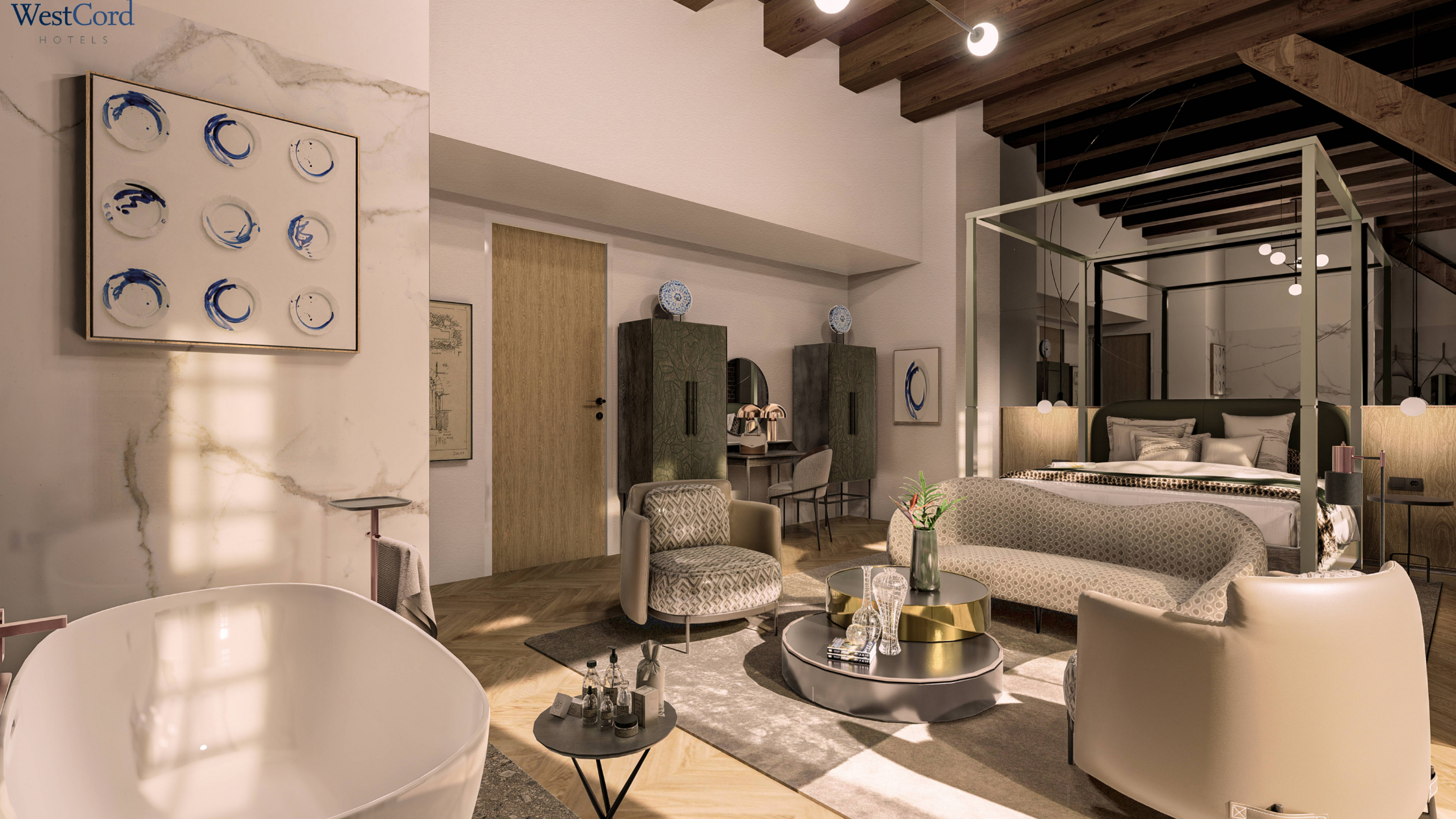 Het ontwerpteam van WestCord Hotels koos voor een mix van klassieke charme en hedendaags comfort. Authentieke details werden behouden en aangevuld met warme materialen, modern design en slimme sfeerverlichting. Zo zijn op de begane grond lambriseringen toegevoegd met indirecte verlichting, waardoor de bakstenen muren subtiel worden uitgelicht. Op de gangen naar de kamers zie je bakstenen muren en balkenplafonds gecombineerd met strakke, moderne, houten wanden die de modules van de hotelkamers bekleden – een krachtig contrast tussen oud en nieuw. Het resultaat? Een hotel waar je onder monumentale balken slaapt en toch geniet van de luxe van nu. Hotel Arsenaal is daarmee een plek geworden waar verleden en heden naadloos in elkaar overvloeien.
